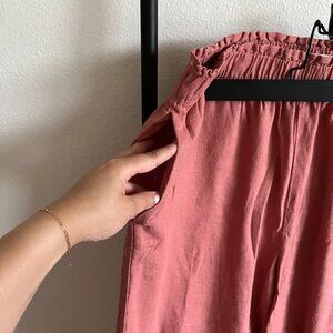 Abercrombie Terracotta Linen-Blend Cropped Wide Leg Pants