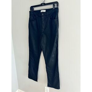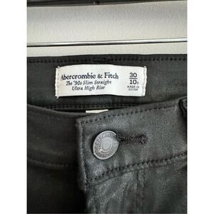 Abercrombie The 90’s Slim Straight Ultra High Rise Black Sheen Leather Coated Pants / Jeans, Size 30/10s