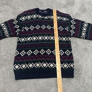 The Abercrombie The Big Sweater Chunky Knit Crew Neck is a vintage-inspired men's sweater from Abercrombie & Fitch. This heavyweight sweater features a Fair Isle pattern in a multicolor design, with a chunky-knit style and long sleeves for added warmth. The relaxed fit and crew neckline make it perfect for casual occasions during the winter season. Made from a blend of ramie and cotton, this sweater is a stylish and cozy addition to any man's wardrobe.