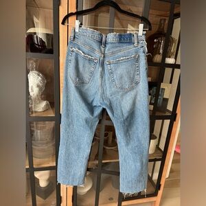 Abercrombie The Dad High Rise Jeans frayed distressed petite short medium wash
