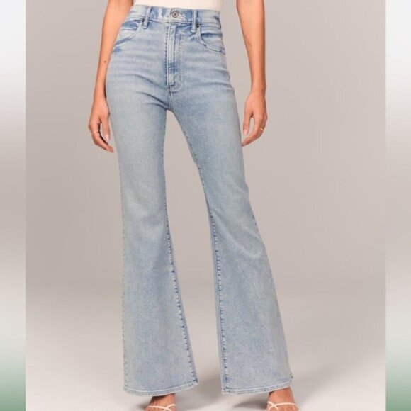 Abercrombie The Flare Women's Ultra Hi Jeans Light Wash 5-Pocket Zipper Fly 16 Short Length