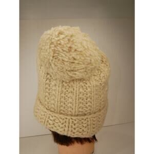 Abercrombie Thick Chunky Knit Cream Wool Hat with Pom - One Size