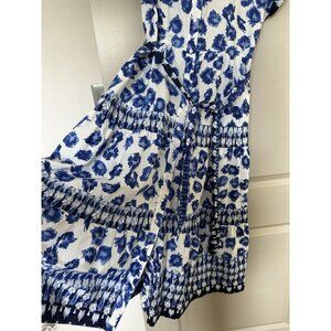 Abercrombie Tiered Tie Waist Blue White Pattern Midi Sundress Large Petite