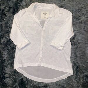 A&F women’s 1/2 sleeve button down top that’s long in the back (aka high low). Semi sheer as shown in photos. In great condition and perfect for with a pair of jeans!