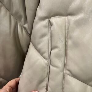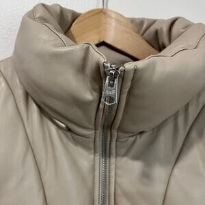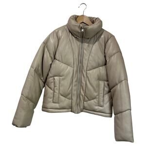 Abercrombie Vegan Leather Puffer Jacket Size M Neutral Beige Cropped Winter