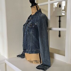 Abercrombie & Fitch jean jacket from around 1999 or early 2000s in excellent condition! Medium-weight jean material that is structured but allows decent movement. Zipper is rigid but runs smoothly. Arms are much longer than the cropped top. A staple piece for classic and sophisticated vintage style. Make an offer!