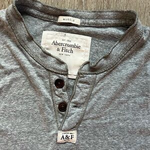Abercrombie & Fitch Vintage Retro Muscle Fit Henley Short-Sleeve Tee Heather Gray Mens Medium