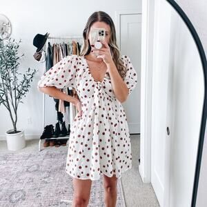 Abercrombie White Brown Polka Dot Puff Sleeve Mini Dress
