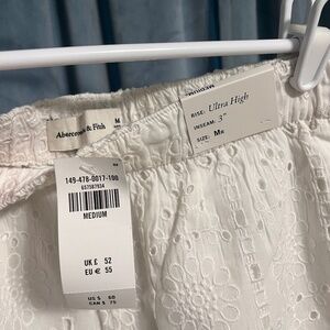 White anglaise lace cotton shorts from Abercrombie, NWT. Never worn except to try on. Medium size with elastic waist band and 3” inseam. Original price $60. Could be dressed up or down!