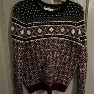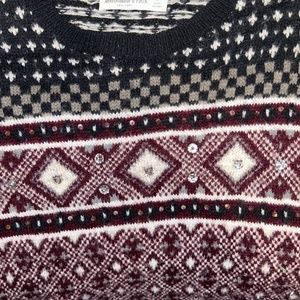 Abercrombie & Fitch Women’s Sweater. Size Medium. Navy blue and Maroon printed with sequin and diamond detailing on front.