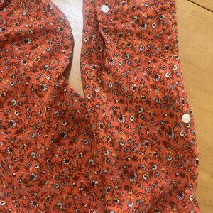 Abercrombie Womens Top Blouse Rusty Orange Floral Size L Long Sleeve Tie Front