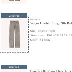 Abercrombie Women's Vegan Leather Cargo 90s Relaxed Pant Gray 34 reg