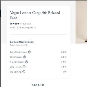 Vegan Leather Cargo 90s Relaxed Pant - 34 regular