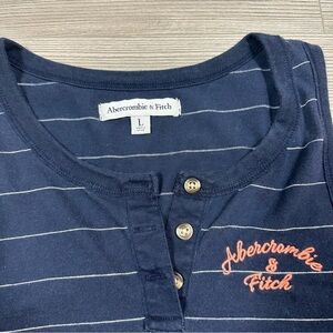 Ships fast from North Carolina! Channel peak Y2K energy in this Abercrombie & Fitch cropped Henley tank. Features embroidered logo, classic navy stripes, and raw hem. Slightly worn feel adds to the vintage charm. Perfect for layering, beach trips, or soft grunge Pinterest fits.