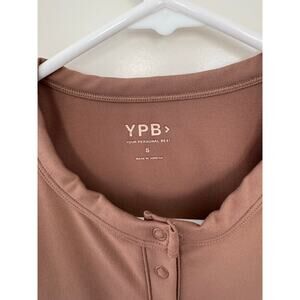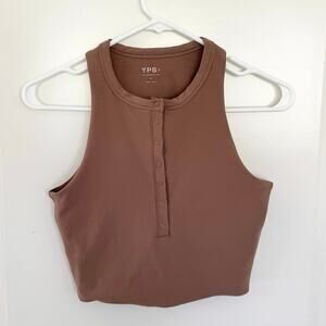 Abercrombie YPB sculptLUX Button Front Plunge Henley Slim Tank Brown Tan Small
