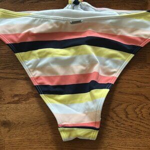 Abercrombie Yellow Coral White Black Stripe Cutout One Piece Knot XS Swimsuit