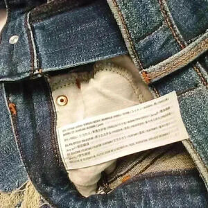 5 pocket styling with rivets, button closure with zipper fly, has belt loops.