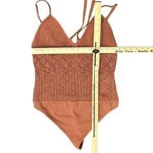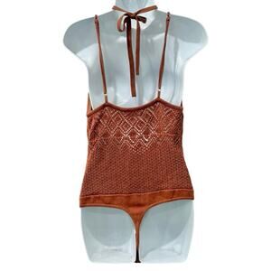 Abercrombie and Fitch Brown Thong Knit Crochet Halter Strappy Bodysuit Size L