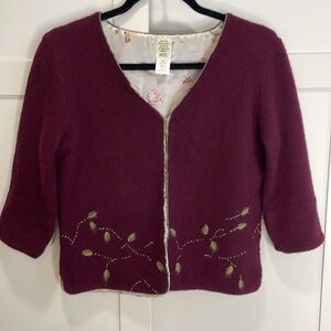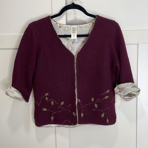 Abercrombie and Fitch Burgundy 100% Lambswool Embroidered Cardigan Jacket