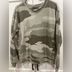 This is a comfy and loose fitting crew-neck camo sweatshirt with neat snap button detail on the sides.