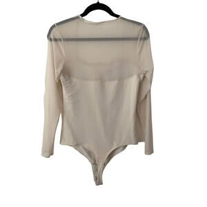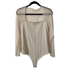Abercrombie and Fitch Cream Sheer Long Sleeve Square Neck Bodysuit - Large