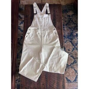 New Without Tag! Abercrombie and Fitch White Denim Jean Overalls/Jumpsuit with Pockets Raw hem Size Large