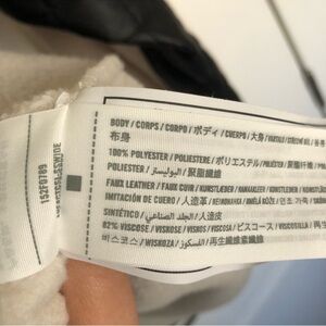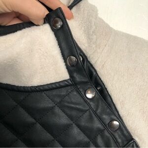 Abercrombie and Fitch Crème and Black Pleather Asymmetrical Snap Up Fleece Pullover Size L