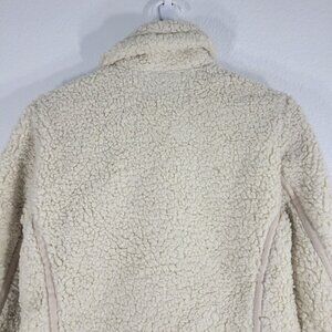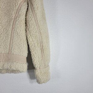 Abercrombie and Fitch Women Size Small Fleece Moto Jacket Faux Leather Trim Zip Pockets Beige. Pre-owned.
