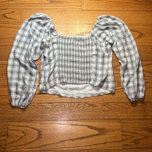 Abercrombie and Fitch Gray and White Plaid Cottage-Core Button Up Blouse A32