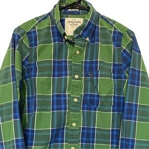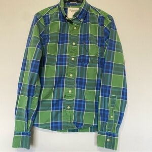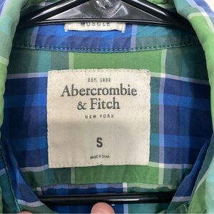 Abercrombie and Fitch Green & Blue Plaid Men's Muscle Button Down Shirt | Small