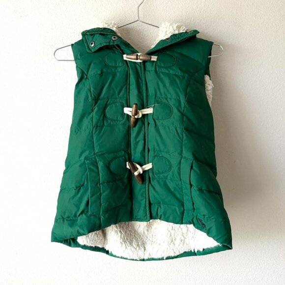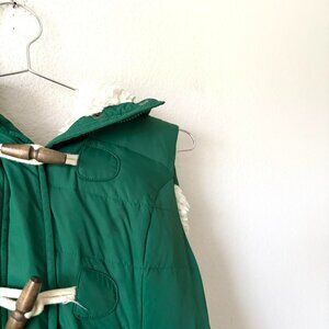 Abercrombie & Fitch green puffer vest jacket with a hood and fleece lining