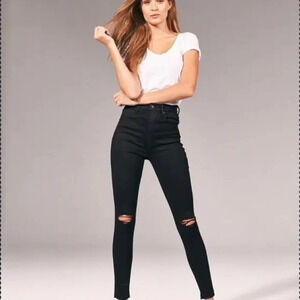Abercrombie and Fitch High Rise Curve Love Skinny Ankle Distressed Black Jeans