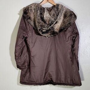 Abercrombie and Fitch Y2K Jacket. Long sleeve, front button-down. Hood. Faux fur lining.
