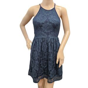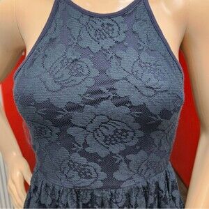 Abercrombie and Fitch Lace Halter Mini Dress with Cutout Back Navy Blue