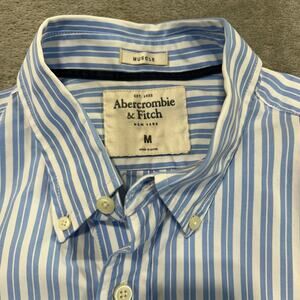 Abercrombie and Fitch Muscle Shirt Medium Blue & White Stripe Button Up Preppy