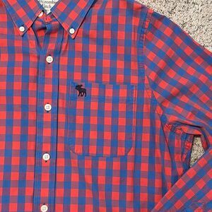 This shirt is made by Abercrombie & Fitch. It’s a long sleeve blue and dark coral/pinkish red muscle cut. Size large and in great pre owned condition. Smoke and pet free home.