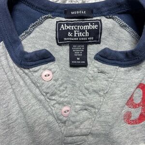 Abercrombie Shirt - Vintage Y2K - Muscle Tee - Henley - Embroidered Spellout - Short Sleeve - Rolled Hem - 9 - Athletic - Preppy - Party - Single Stitch Sleeves -