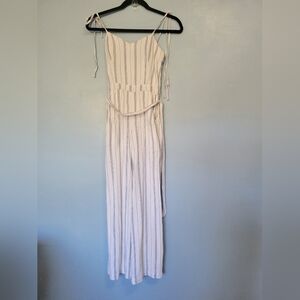 Abercrombie and Fitch Striped Linen Blend Cropped Jumpsuit Size XS Blue/White