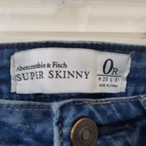 Destroyed/ripped Abercrombie and Fitch Super Skinny Jeans size 0R. Waist 25, Length 31. No defects or rips other than those that are intentional.
