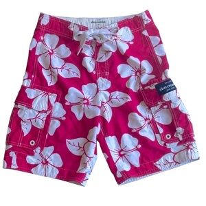 Abercrombie and Fitch Swim Trunks Y2K Hawaiian Floral Pink White Big Kid L