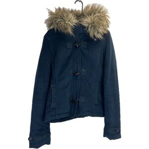 Abercrombie and Fitch Togo Blue Wool Faux Fur Hood Jacket Size L