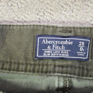 Elevate your style with these Abercrombie and Fitch vintage women's camouflage cargo pants. The pants feature a low rise waist and a slim boyleg fit with a 25-inch inseam. The flat front and chino fabric give the pants a classic look, while the army, retro, and hip hop themes add a touch of edginess. The pants come in a green color and have a zip and button closure. They are machine washable and made of 100% cotton, ensuring comfort and durability. These pants are perfect for travel or casual occasions and are a must-have for any fashion-forward woman's wardrobe.