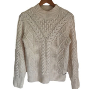 Abercrombie and fitch white cream chunky oversize cable knit sweater mock neck