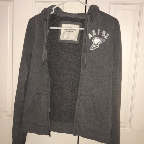 Abercrombie and Fitch Zipper Hoodie. Size- Small Color- Grey Perfect condition. My name is written in the inside tags but those can be cut out.