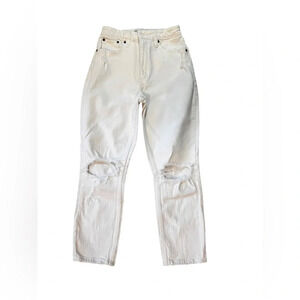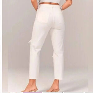 Abercrombie and Fitch curve love high rise mom jean size 00 SHORT (24 inch inseam) excellent condition white with distressed knee so cute and flattering