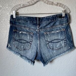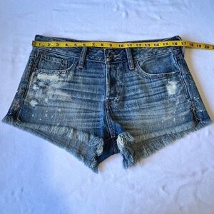 Abercrombie and Fitch size 28 distressed raw hem bleach splatter jean shorts