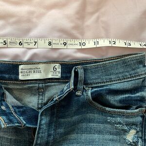 Size 6, waist 28, inseam an inch and a half very short, inseam, high-rise, with distressing
