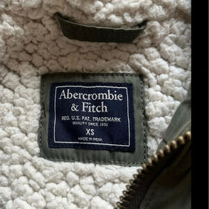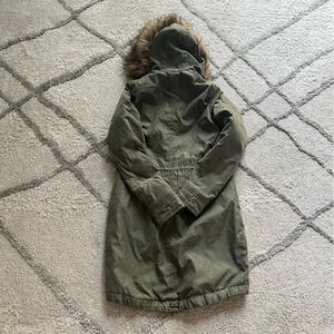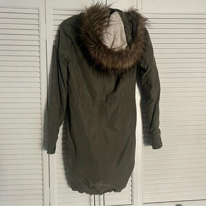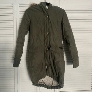 Abercrombie and Fitch green parka jacket fleece lined coat fur hood longer XS