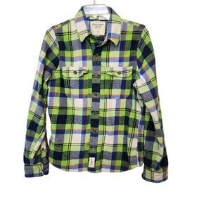 Abercrombie and Fitch green plaid flannel button down shirt Small