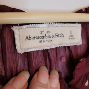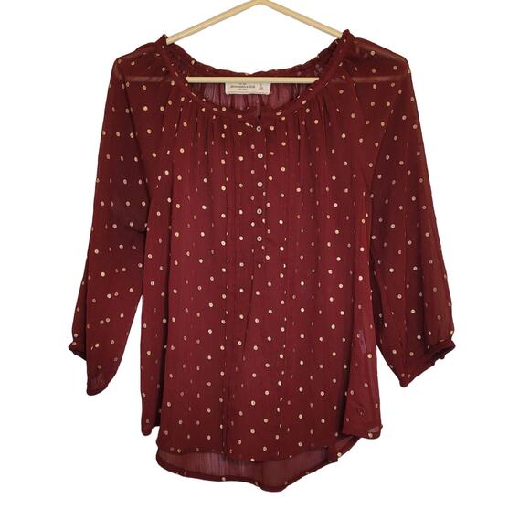 Abercrombie and Fitch maroon red gold polka dots sheer long sleeved top Size S